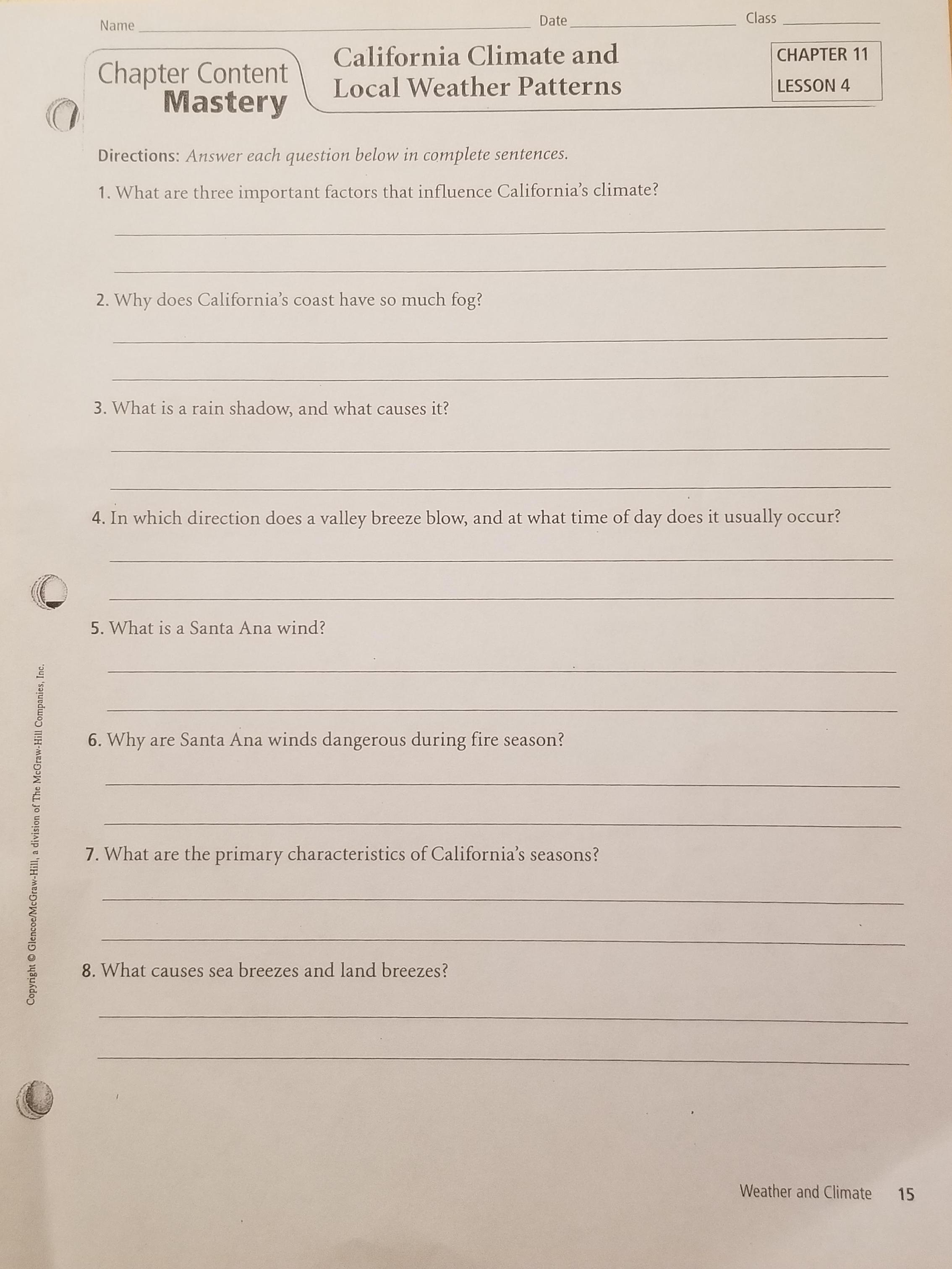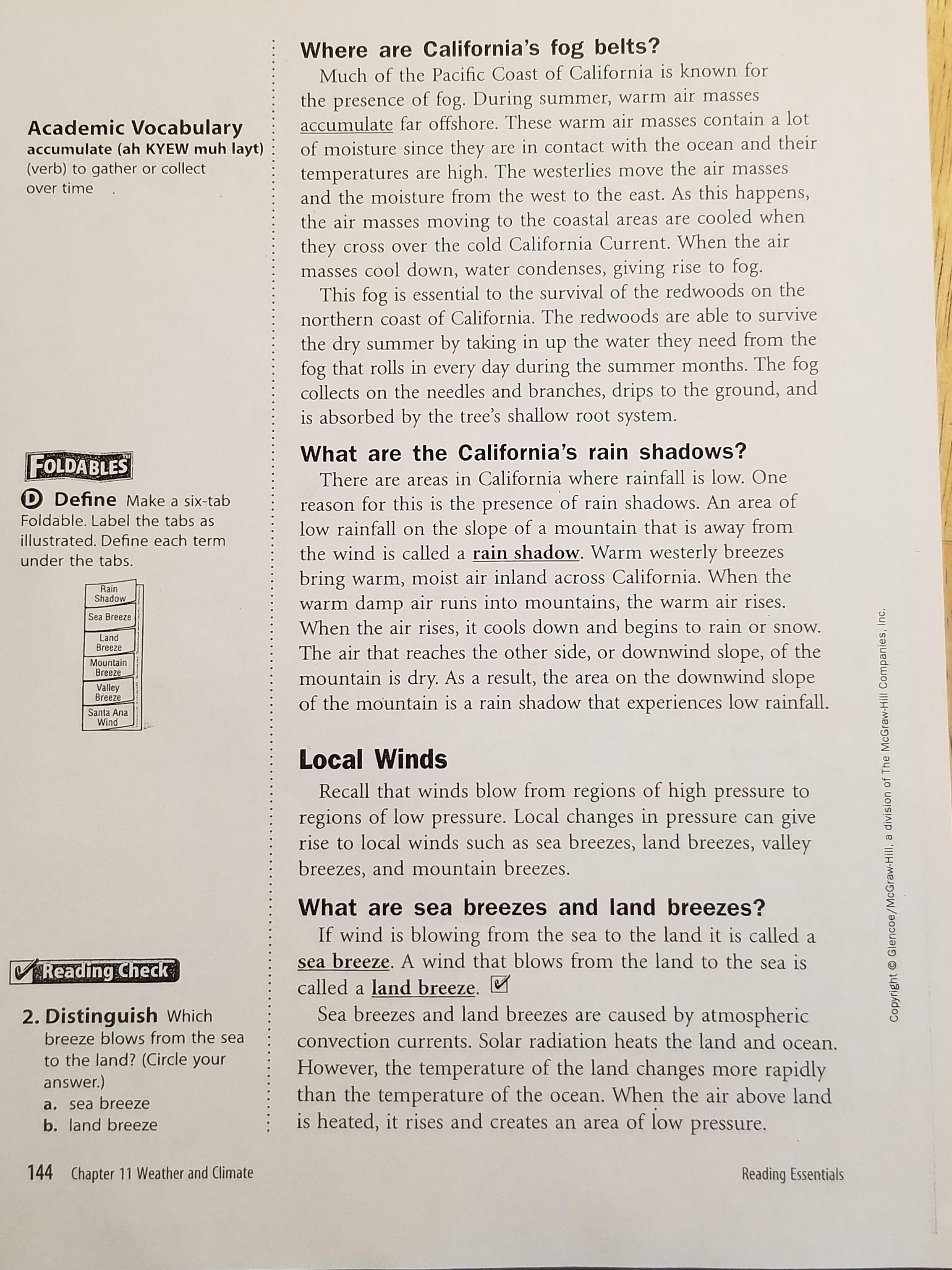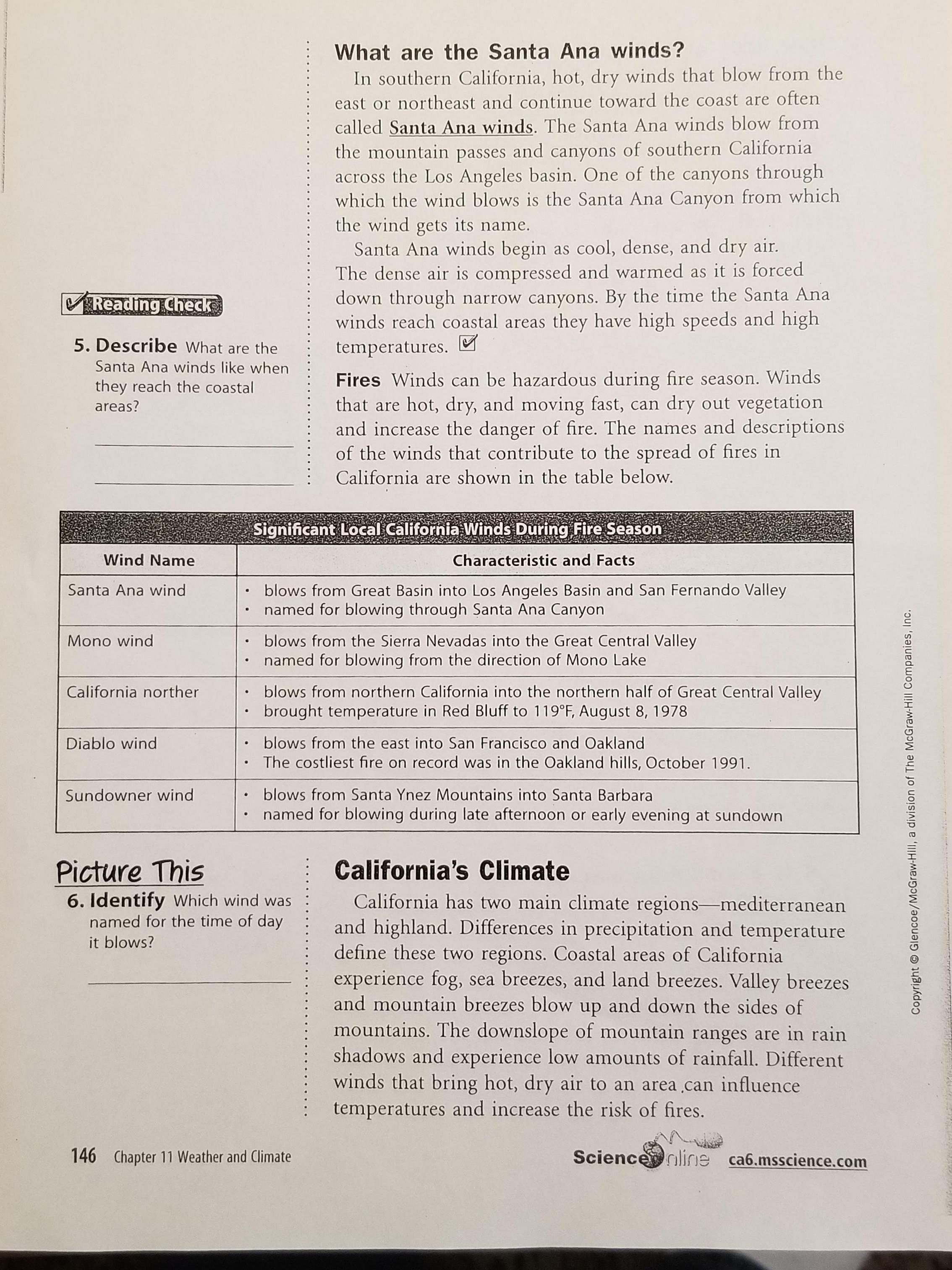 Copy and study Cornell Notes on Chapter 11, Lesson 4, California Climate and Weather Patterns using your composition book. See attached